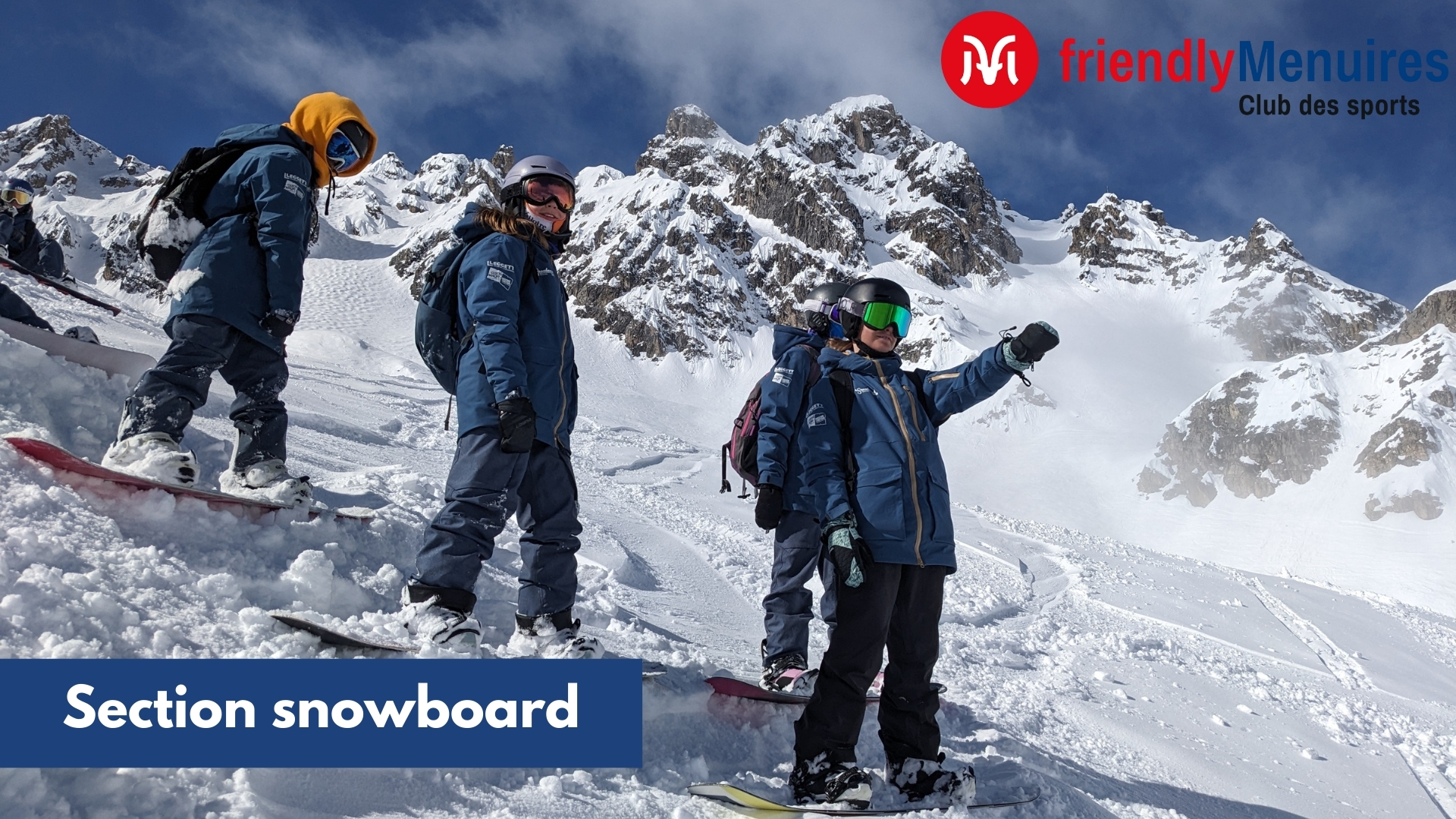 La section snowboard regroupant des jeunes passionnées allant de la catégorie Mini-microbes (U7) à Minimes (U16) comprends des entraînements variés tout au long de l’année chapoté par 2 entraineurs. Le programme hors saison hivernal est rythmé avec des stages collectifs, des randonnées, skate, canyoning, surf, activités ludiques afin de se préparer physiquement à la saison hivernale. La section, c’est aussi des stages de Snow pour continuer à travailler et à progresser techniquement, tactiquement et mentalement.